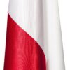 Flaga posiada tunel o średnicy 3 cm, co umożliwia szybkie i stabilne mocowanie na drzewcu. Precyzyjne szycie francuskim szwem płaskim gwarantuje trwałość i schludne wykończenie.